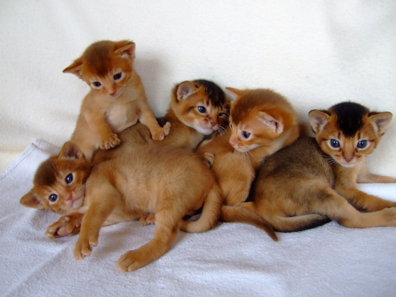 Eltern des quirligen Qunitetts sind CFA-CH Rosajati´s Anais (wildfarben) und EC Apollo von der Linderhöhe (sorrel). Mama und Zwergen geht es ausgesprochen gut, sie wachsen und gedeihen prächtig, beginnen längst schon ihren unwiderstehlichen Charme einzusetzen, wickeln jeden sofort um die Pfote und hecken bereits vielerlei Unsinn aus.