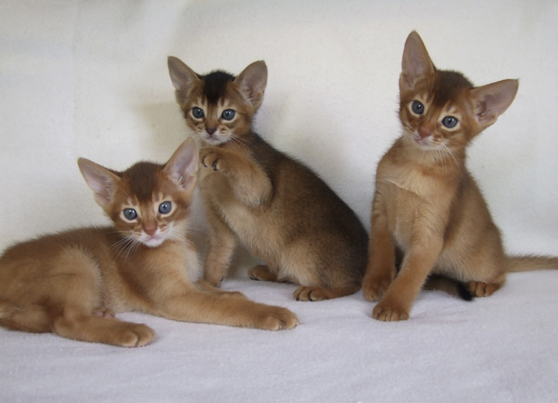 Mutter und Kindern geht es blendend und die Zwerge haben es bereits faustdick hinter ihren großen Ohren. Schon jetzt sind sie ausgesprochene kleine Persönlichkeiten und ab Mitte November auch startklar für neue Abenteuer. Wir wünschen uns dafür verantwortungsvolle Menschen, die den speziellen Charme und das Temperament der Abessinier zu schätzen wissen.