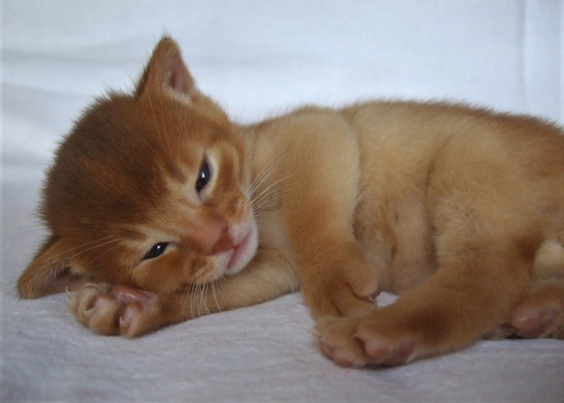 Mama Luana hat sich von den Strapazen längst wieder erholt und kümmert sich rührend um den kleinen Abyprinz. Er entwickelt sich prächtig und hat als roter Teufel besonders viel Schalk im Nacken. Zudem ist Merlin das reinste Powerpaket und kaum müde zu bekommen. Es ist mit ziemlicher Sicherheit zu erwarten, dass er genau wie bereits seine Mama Luana, ein grosser, muskulöser und eleganter Kater werden wird. Inzwischen bringt er im Alter von 18 Wochen 2400 Gramm pure Energie auf die Waage, sodass sich seine weitere Entwicklung diesbezüglich schon fast erahnen lässt......