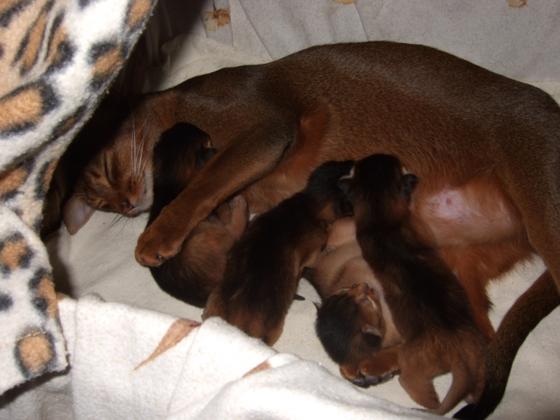 Unser besonderer Dank gilt der Cattery Qabalan, die uns diese wundervolle Verpaarung mit Damian erst möglich gemacht hat. Wir sind sehr gespannt auf die weitere Entwicklung und wieviel genetischen 'Pfotenabdruck' Mama und Papa jedem Einzelnen mitgegeben haben...