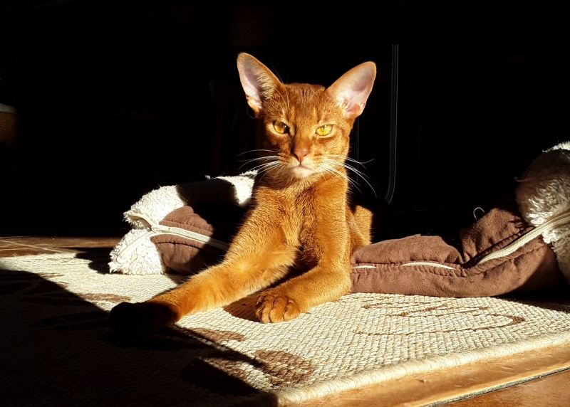 Katania hat uns mit ihren drei Kindern aus dem L-Wurf wunderbare und äussert typvolle sowie ausdrucksstarke und farbintensive Abypersönlichkeiten geschenkt. Sie war ihnen eine fürsorgliche und rührende Mutter, die resolut und mit ihren eigenen Vorstellungen ihre Kinder grossgezogen hat. Dabei hat sie ihre Mitkatzen, wie Oma und Halbschwester, in die Kinderaufzucht mit einbezogen und sie auch völlig entspannt gewähren lassen. Die drei Kinder sind inzwischen zu eigenen kleinen Persönlichkeiten herangewachsen und bezaubern durch ihren speziellen Abycharme ihre Menschen.
